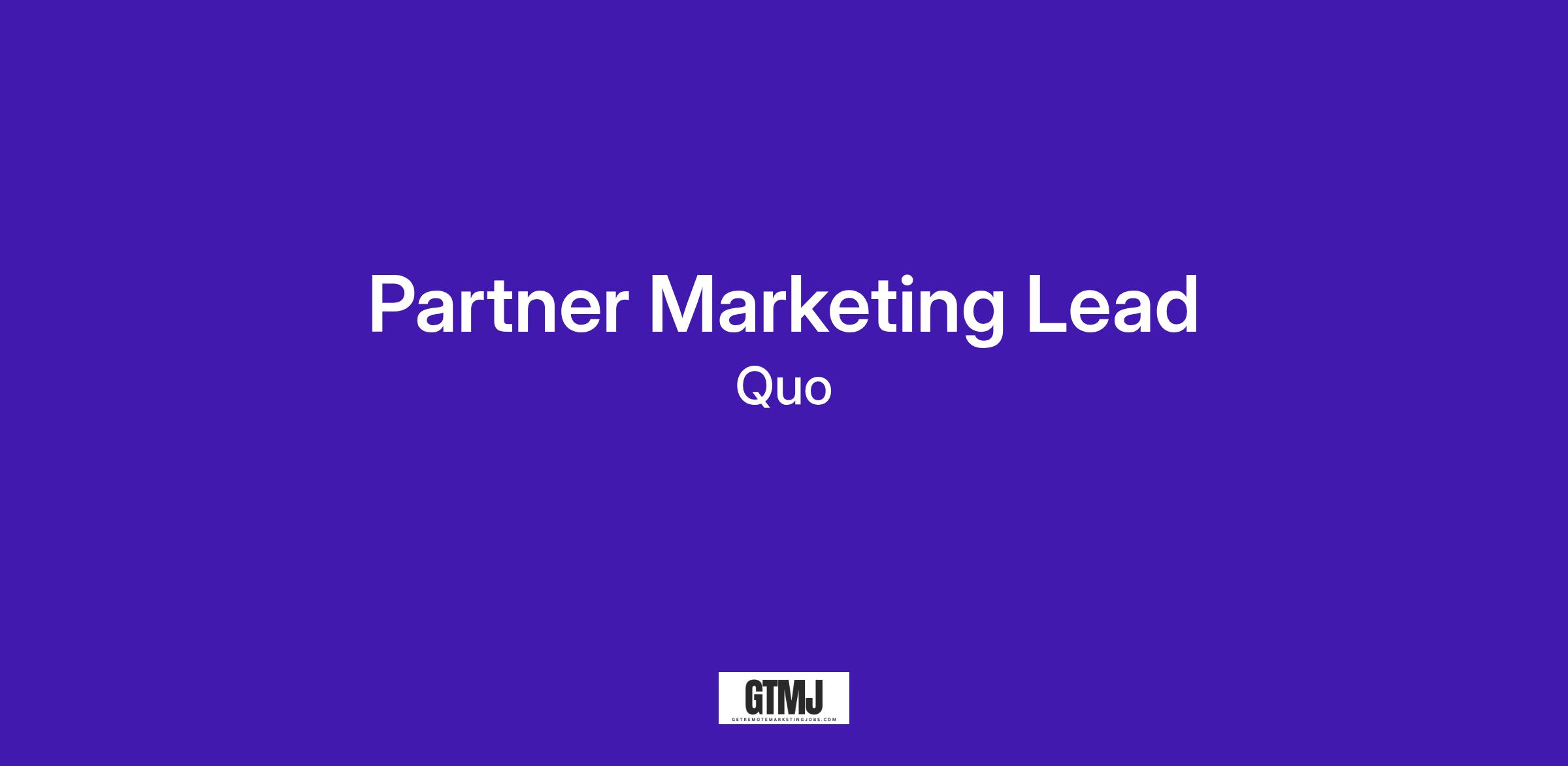 We’re looking for our Partner Marketing Lead to work on the go-to-market strategy for Quo’s growing ecosystem of integrations and strategic partners. You’ll own how we bring integrations with CRMs and other core tools in our customers’ stack to market, from launch messaging and positioning to campaign execution and co-marketing with partners. Sitting on the Partnerships team and working closely with Product Marketing, Content, and Paid Marketing, you’ll be a key driver of how Quo shows up across the ecosystem and how we turn partnerships into meaningful growth.